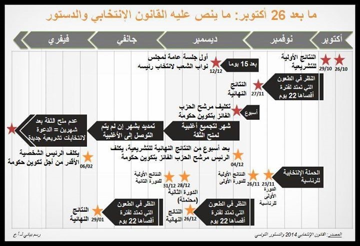 The final results of the legislative elections were announced by the ISIE (Independent Supreme Council for Elections) in a public communiqué on 20 November 2014. President Marzouki announced on 21 November that he had sent an official written request to the headquarters of the largest party in the Assembly, Nidaa Tounes, tasking its leader with forming a government as required under the Constitution. However, some have argued that the “election results” referred to in Article 89 are the results of the Presidential elections, not legislative elections, and thus it is only once the presidential election results are announced that Article 89 kicks in.