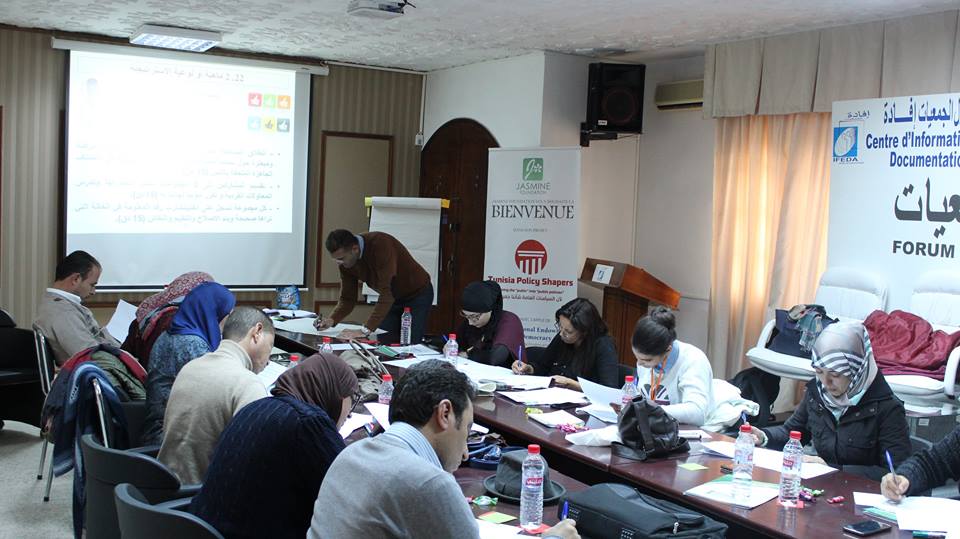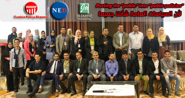 The second version of “Tunisia Policy shapers” is an ambitious program that aims to empower the Tunisian nacant civil society to become more involved in the process of decision making and in shaping the public policies in Tunisia. It consists of training workshops on public policy analysis and writing policy papers around various social and economic issues. This project also works to promote dialogue on public policy between the public sector, private sector and civil society through the organization of seminars and round tables where experts from all sectors discuss common issues and work on building consensus on policies and solutions. The project consists of three major deliverables: